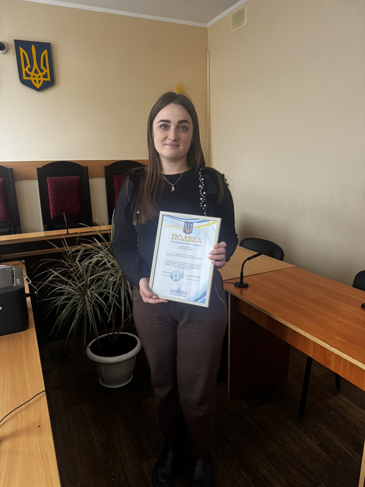 За сумлінне виконання службових обов’язків, належну організацію роботи, вагомий внесок у справу зміцнення правових засад у суспільстві, високий професіоналізм та з нагоди Дня юриста Грамотою Хмельницької обласної ради відзначено помічника судді Лілію Чепрак, Подяку Хмельницької обласної ради оголошено секретарю судового засідання Лєні Конфедерат.